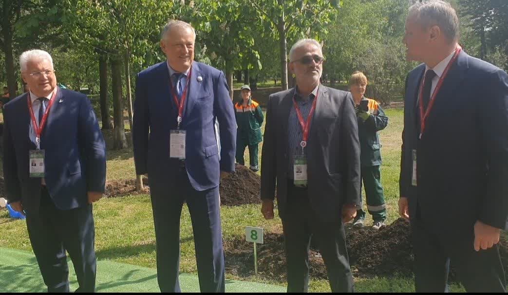 دکتر نوبخت رییس سازمان منابع طبیعی کشور در راستای طرح مردمی کاشت یک میلیارد درخت یک اصله نهال به اتفاق شهردار شهر لنینگراد به پیشنهاد ایران و استقبال شرکت کنندگان و برگزار کنندگان کنگره کاشت.
