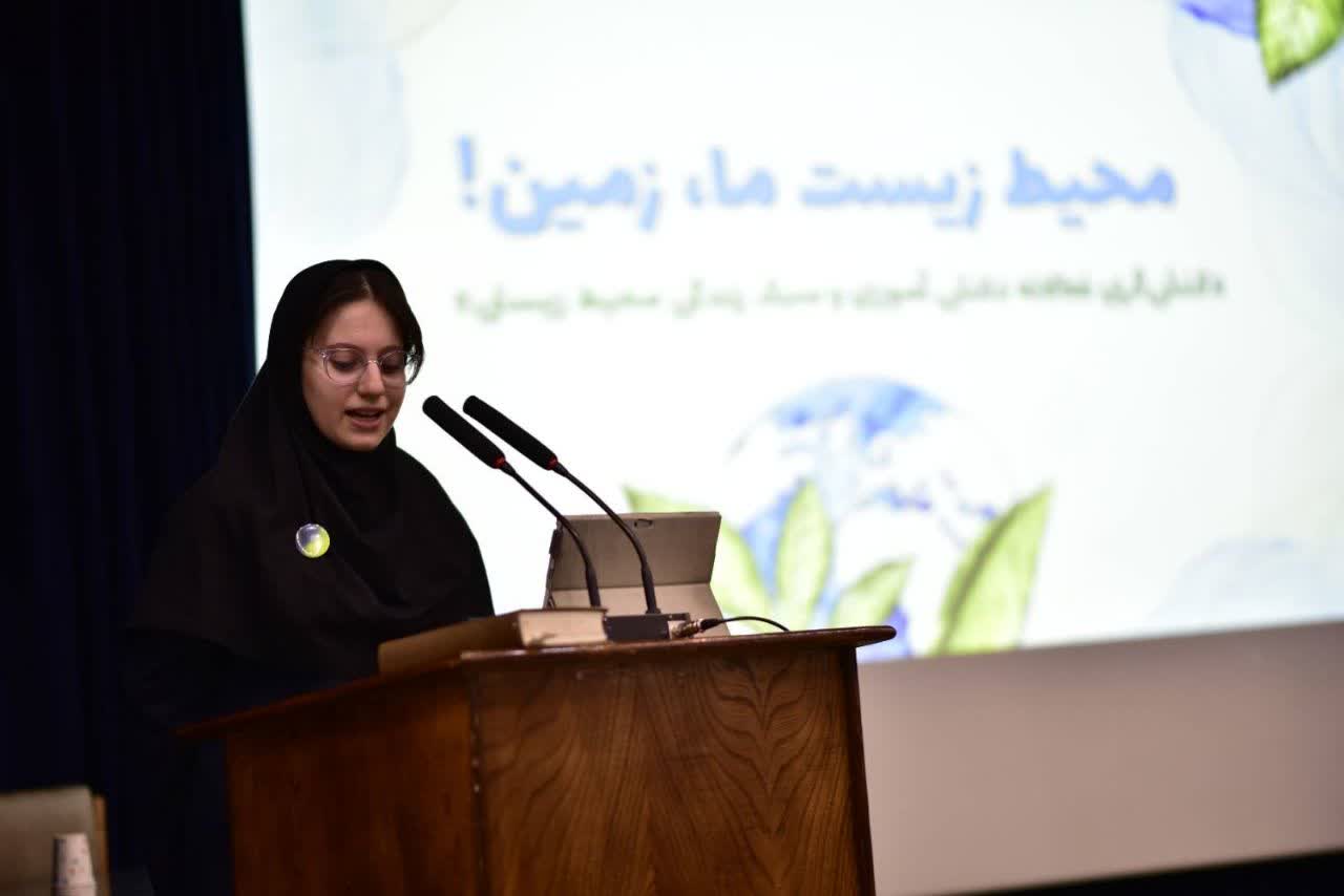 آقای دکتر وحدتی از همکاران حفاظت از سازمان محیط زیست نیز سخنران بعدی بود که مشکلات و مسائل زیست محیطی جهان و ایران را مورد تأکید قرار دادند. آقای دکتر مجتبی محمدیزاده، رئیس اداره جنگلداری و جنگلکاری اداره کل منابع طبیعی و آبخیزداری استان البرز به عنوان سخنران بعدی با ارائه آماری از استان البرز از جمله سرانه فضای سبز ده متر مربع در استان و 15 مترمربع در کرج و مقایسه آن با سرانه فضای سبز 25 مترمربع برای جهان به فاصلۀ آمار کشور ما با جهان اشاره کردند. پوشش فضای سبزی 30 هزار هکتاری اعم از شهزی و پیرامونی در استان که شش درصد مساحت استان را پوشش میدهد آمار قابل تأمل دیگری بود. تراکم جمعیتی و مهاجرپذیری بالای استان البرز در کشور و تخصیص مقام اول در این مورد لزوم توسعه فضای سبز را نشان میدهد. ده هزار هکتار جنگلکاری اگر چه کاری خوب ولی ناکافی است. طرح مردمی کاشت یک میلیارد درخت از 1402 تا 1405 طرحی حیاتی است که مشارکت تمام مردم را نیاز دارد. به گفته دکتر محمدیزاده، تلاش همکاران وی در نهالستان بزرگ کرج تولید گونههای بومی مقاوم به کمآبی و خشکی است که از آبان ماه امسال نهالها به صورت رایگان ولی تحت نظارت در اختیار مردم قرار میگیرد. از طرفی استفاده از آبهای سطحی و پسابها و مشارکت شهرکهای صنعتی تأمین آب نهالکاری در اولویت استفاده است که با توجه به ماده 19 قانون مبارزه با آلودگی هوا مبنی بر تخصیص 25 درصد فضای شهرکهای صنعتی به فضای سبز صورت میگیرد. استفاده از نهالهای رایگان دولتی مورد استقبال نمایندگان دانشآموزی قرار گرفت و برای همکاری اعلام آمادگی کردند. در ادامه نمایندگان دانشآموزان نخبه به طرح و بررسی ابتکارات خود در زمینه کارهای گروهی در جهت کمک به محیط زیست و منابع طبیعی پرداختند که بر محورهای متنوعی چون آموزش و مشارکت استوار بود.